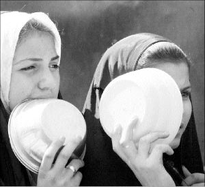 Los asistentes arribaron al lugar portando banderas blancas, se manifestaron contra los ataques de Estados Unidos sobre el pueblo iraquí y rezaron por la paz.