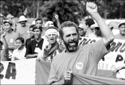 Mientras los manifestantes, con los brazos levantados,