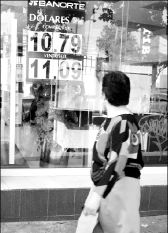 Cotización del dólar en una sucursal bancaria de la ciudad de México FOTO