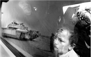 La imagen de un niño iraquí se refleja