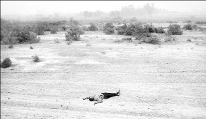 El cuerpo de un iraquí yace en un camino al norte de Nasiriya. Más de 30 hombres en edad militar perdieron la vida en esta carretera clave del norte de Irak, en un aparente ataque de las tropas invasoras contra vehículos que transportaban a soldados iraquíes. La foto fue tomada el martes pasado FOTO REUTERS