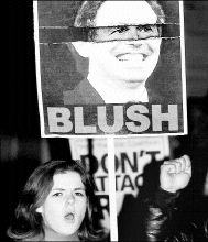 En relación con la represión llevada a cabo por la policía en las recientes manifestaciones por la paz, sobre todo en Madrid, donde más de 150 personas han resultado heridas, Aznar afirmó que "el comportamiento global del cuerpo ha sido bueno".