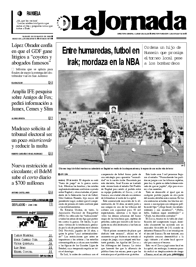 Entre humaredas, futbol en Irak; mordaza en la NBA