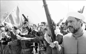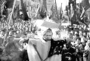 nación vecina, Irak. Portando carteles del ayatola Jo-meini y pancartas