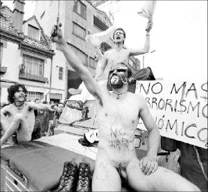 activistas antibélicos y la policía. En Colombia un grupo