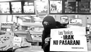 y a corear consignas como ''La paz burguesa/no nos interesa'' y ''Hussein
