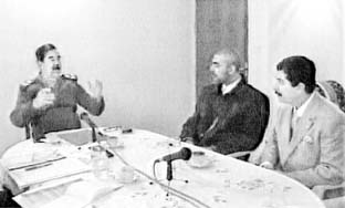 La televisión iraquí mostró ayer una breve filmación en la que aparece el mandatario del país petrolero con sus hijos Uday (al centro) y Qusay. No se especificó cuándo fue realizada la grabación FOTO REUTERS