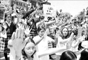las preguntas y a mostrar sus pancartas: "Los niños de México
