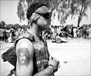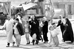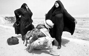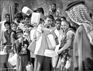 Un soldado estadunidense ofreció una botella de agua a un iraquí, pero fue inmediatamente regañado por su generosidad. "Estamos aquí para la guerra, no es una misión humanitaria, ¿entiendes?", le gritó un sargento. Así, los iraquíes seguían su camino lejos de los combates, pero sin ayuda alguna.