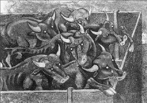 En esta exposición, añade, ''pareciera que soy un fanático de los toros, y no, probablemente nunca asista a una corrida. Esto quiere decir que para mí el tema pierde importancia cuando se está experimentando, por ejemplo, con el volumen. Lo mismo sucede con el humor, aquí no interesa tanto como en los cartones. Los toros de mis pinturas y grabados no están copiados de la vida real y son sólo un pretexto que me permite jugar con toda una gama de posibilidades en cuanto a técnica y forma".