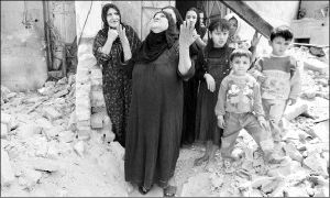 Cayó Bagdad. La ciudad fue tomada por las tropas que le llevaban la libertad. Sus hospitales se hallan lastimeramente atestados de civiles quemados y lisiados, muchos de ellos niños, y todos víctimas de misiles computarizados, obuses y bombas lanzados por los libertadores de la ciudad. Las estatuas de Saddam Hussein fueron derribadas. Mientras tanto, en el Pentágono, el secretario Donald Rumsfeld sugiere en una conferencia de prensa que el siguiente país que liberarán será Siria.