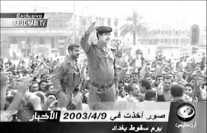 mostrando a Saddam Hussein rodeado de personas en Bagdad el 9 de abril,