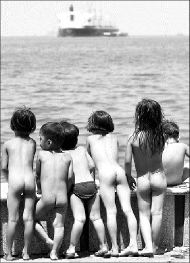 Niños en Manila, Filipinas, observan un barco alejarse