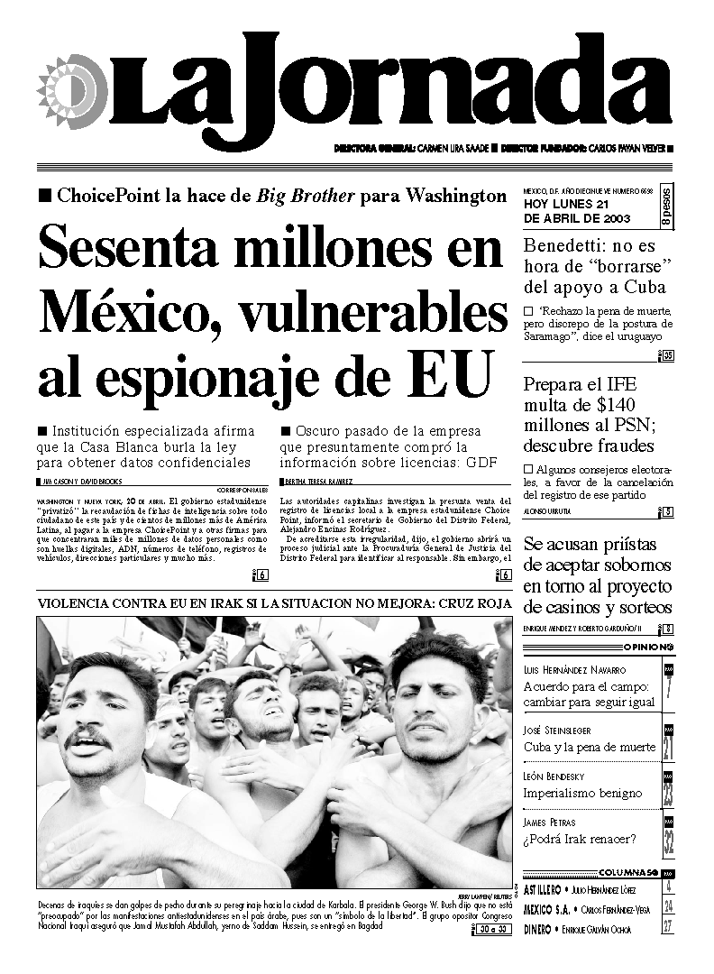 Euros de empresas españolas consentidas de Aznar y billetes verdes de empresarios cubano-americanos de Florida, favoritos de los Bush, en la contienda electoral de Argentina.