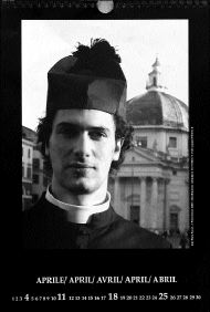 La agencia de noticias Reuters boletinó ayer imágenes del Calendario Romano 2004, del fotógrafo Piero Pazzi, que muestra curas y seminaristas italianos posando junto a iglesias y monumentos culturales. Funcionarios vaticanos reconocieron que este producto no cuenta aún con licencia mercantil oficial FOTO REUTERS