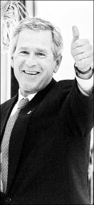 Bush se limitó a levantar el dedo pulgar en señal de victoria.