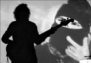 La silueta de Juan Calleros, bajista del grupo mexicano Maná, se recorta frente a una imagen del subcomandante Marcos durante un concierto celebrado el viernes pasado en las instalaciones del Panamá Canal Village de Amador, en la ciudad de Panamá. Maná ha retomado su gira Revolución de Amor, que continuará por Costa Rica, República Dominicana, Puerto Rico y España FOTO AFP