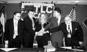 CENTROAMERICA Y EU NEGOCIAN TLC  Los jefes de las delegaciones de Honduras, Guatemala, Costa Rica, El Salvador y Nicaragua se reunieron en Guatemala, al iniciarse la cuarta ronda de negociaciones del Tratado de Libre Comercio entre Centroamérica y Estados Unidos FOTO AFP