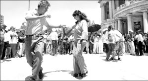AL RITMO DE LAS SOMBRAS  Gran y sabroso bailongo se efectuó la mañana de este domingo en la explanada del Palacio de Bellas Artes como parte de los festejos por el Día Internacional de los Museos. El sol en pleno cenit y los lúdicos contoneos por la música del grupo Recuerdo del Son hicieron sudar la gota gorda a los concurrentes FOTO MARIA LUISA SEVERIANO