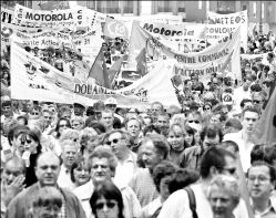 y lanzaron granadas lacrimógenas para dispersar a cientos de huelguistas.