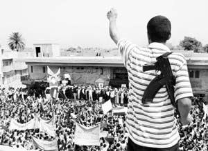 Más de 10 mil musulmanes corearon esa consigna durante una manifestación frente a una mezquita en Bagdad, contra la ocupación estadunidense. Washington se dijo dispuesto a dar ``autoridad independiente'' a un representante especial de la ONU en el país árabe, en un esfuerzo para que su proyecto de resolución sea aprobado en el organismo multilateral FOTO REUTERS