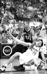 Los Mavericks quedaron virtualmente liquidados cuando en la medianía del último tramo perdieron a su astro alemán Dirk Nowitzki, quien se lastimó una pierna en una jugada bajo su propio aro. Tras su salida, los Mavs se vieron imposibilitados para contener el cañoneo indiscriminado de Duncan y Parker. La ausencia del gigante teutón derrumbó la moral de los correcaminos de Dallas.