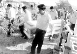 La comunidad La Labor, del municipio de Cárdenas, se reunió para el sepelio de Edgar Gabriel Hernández Zúñiga, que perdió la vida la semana pasada cuando viajaba en un tráiler abandonado por polleros en Victoria, Texas. Ayer, autoridades migratorias detuvieron en dos operativos en Chiapas a 123 centroamericanos sin documentos. Por otra parte, la Armada capturó en Tamaulipas a cuatro chinos, un guatemalteco y 10 mexicanos que los acompañaban. Las trabas para ingresar a México son tan severas como las que impone Estados Unidos, relata un indio ecuatoriano a La Jornada FOTO LUIS RICARDO SOLACHE /LA JORNADA SAN LUIS