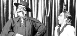 DENTRO DE UNA escenografía muy cabaretil, la caracterización de los personajes está cuidada con tanto detalle que adquieren una sensación de realismo caricaturesco sorprendente. Pero si existe un enorme trabajo de caracterización, no es menor la labor actoral en cuanto a la gesticulación de los personajes, los cuales logran aún mayor veracidad.