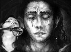 La noche del viernes en el foro Circo Volador fue inolvidable; los dos intérpretes se presentaron en un improvisado escenario en el vestíbulo del lugar; ella vestida de pantalón de mezclilla y blusa morada, él todo de negro. Ella con la voz a cuestas y él con la lira a un lado y el tequila a sus pies.