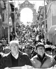 Una multitud de maestros, estudiantes, campesinos y ciudadanos en general se congregaron este día en la ciudad surandina de Puno, adonde llegaron procedentes de diversas provincias de la región y marcharon pacíficamente y con crespones negros por las calles.