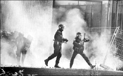 Publier, Francia, 31 de mayo. Policías franceses lanzaron este sábado gas lacrimógeno contra 400 manifestantes antiglobalización que rompieron vidrios de comercios y atacaron un local del Partido Socialista francés en Annemasse, indicó la prefectura local, a menos de 24 horas de que dé inicio en Evian la reunión de los países más ricos del mundo.