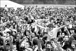 Agotados, acalorados y hartos llegan los informadores por fin al puerto de la sede de la cumbre. Curiosamente aquí el ambiente parece mucho más relajado y se ven multitud de turistas -¿son los franceses distintos?- para, de pronto, enterarse de que su centro de prensa está a unos 20 kilómetros de Evian.