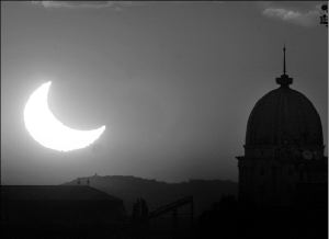DEL OTRO LADO DEL MUNDO  Eclipse solar visto desde Budapest, Hungría, la tarde de ayer. La luna cubrió poco más de 80 por ciento del brillo solar. El fenómeno se pudo apreciar en parte de Europa y Medio Oriente FOTO REUTERS