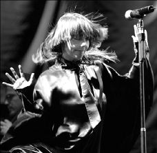La cantante islandesa Björk durante su actuación en el Museo Príncipe Felipe de la Ciudad de las Artes y las Ciencias, en Valencia, España, la noche del viernes FOTO AFP