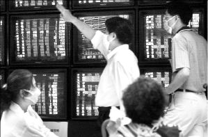 TENDENCIAS BURSATILES VARIABLES  La actividad bursátil en Estados Unidos empezó la semana con poca actividad y los principales indicadores mostraron cambios mínimos con tendencia variable. El promedio Dow Jones de la bolsa de Nueva York ganó 0.54 por ciento y se ubicó en 8 mil 897.81 unidades, mientras el índice compuesto Nasdaq bajó 0.32 por ciento y cerró en mil 590.75 y el Standard and Poor's 500 avanzó 0.35 por ciento y se colocó en 967 puntos. En el mercado de dinero el euro continuó su tendencia a la baja frente al dólar. El Banco Central Europeo fijó para este lunes una cotización de referencia para la moneda común europea de 1.1672 dólares frente a 1.1822 del viernes. En la foto, inversionistas analizan los datos bursátiles del mercado de Taipei, mientras mantienen medidas de seguridad por temor al contagio de la neumonía atípica, que desde mediados de marzo ha cobrado 81 vidas entre los 684 casos detectados FOTO AFP