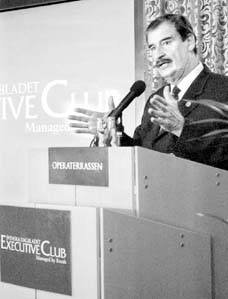 Vicente Fox durante el encuentro empresarial realizado en Estocolmo FOTO NOTIMEX