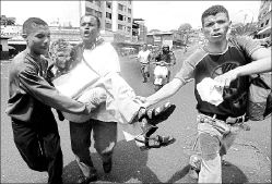 de atacar en el lugar a los chavistas, que respondieron lanzando piedras,