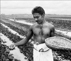 LLEGAN LAS LLUVIAS A INDIA  Un granjero de India esparce las primeras semillas después del arranque de las temporada de lluvias monzónicas. La larga espera del monzón ha terminado con la llegada de un alivio a la fuerte ola de calor que provocó la muerte de unas mil 500 personas el mes pasado FOTO AFP