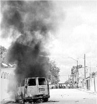 En la riña, los lugareños quemaron una camioneta en la que