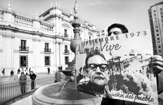 En una ceremonia en un costado del palacio de La Moneda se conmemoró el nacimiento del derrocado presidente chileno hace 95 años, quien murió el 11 de septiembre de 1973 durante el golpe militar de Augusto Pinochet. Claveles rojos fueron colocados en el monumento erigido en su honor, con la presencia de su viuda Hortensia Bussi y su hija Isabel, así como de líderes socialistas y comunistas chilenos FOTO REUTERS