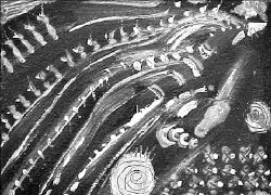 de Heme aquí al borde del espacio, la pintora ''concibe el