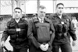 de la Armada (Esma) descendió de la unidad de la AFI. Iba esposado,