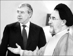 Jatami en una reunión con el ministro de Relaciones Exteriores británico,