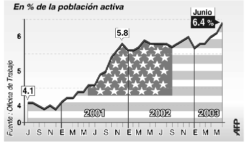 Una tasa de desempleo que siga al alza podría dañar seriamente las posibilidades de la relección de Bush en 2004, por lo que sus estrategas y asesores han empezado a preocuparse.