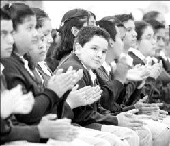 Guerra, durante la ceremonia oficial de clausura del ciclo escolar 2002-2003.