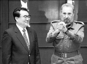 El presidente de Cuba, Fidel Castro Ruz, y Li Changchun, miembro de una delegación china que visita La Habana FOTO REUTERS