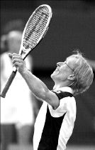 Jean King en Wimbledon, al adjudicarse el torneo de dobles mixtos en la