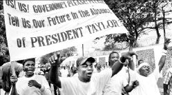 Taylor prometió dimitir tan pronto haya fuerzas internacionales de paz en territorio liberiano, tras advertir que un vacío de poder provocaría caos. A su vez, el secretario de Estado estadunidense, Colin Powell, indicó que Washington decidirá en breve sobre una misión en Liberia, en entrevista con CNN.