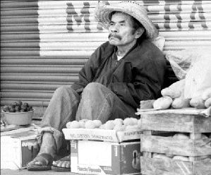 Indígena vende fruta en el Centro Histórico