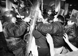 La negociación promovida por los gobiernos federal y capitalino devino choque entre comuneros y policías, con resultado de un lesionado. Por lo pronto, Gobernación aceptó la propuesta de representantes del Ajusco para que la PFP resguarde el predio de mil 500 hectáreas en disputa FOTO JOSE CARLO GONZALEZ